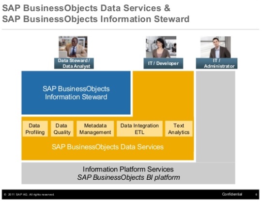 Konu veri temizliği olduğunda, verinin son kullanıcısı olan kişilerin de ham verinin alınıp anlamlı ve temizlenmiş bir hale getirildiği süreçlerin içine dahil edilebilmeleri gerekmektedir. Teknik bilgiye sahip, etl araçlarıyla datayı dönüşümden geçiren kullanıcılar için Data Services mevcut iken, son kullanıcıların/analistlerin sürece dahil olmasını sağlayan araç ise Information Steward. Verinin sahibi bu son kullanıcılar Information Steward üzerinde yarattıkları paketleri Data Services üzerine deploy ederek verinin temizlenmesine ve standardize edilmesi adımlarına katkıda bulunabilirler.