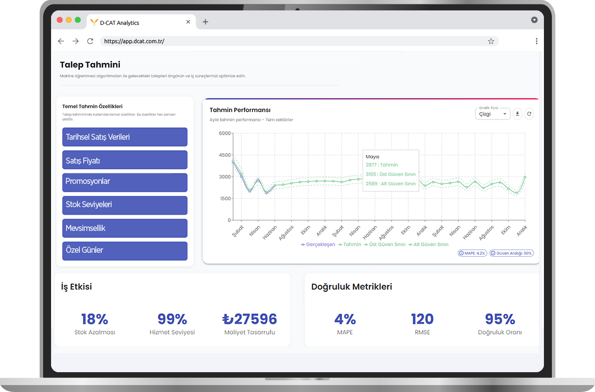 - Performans Takibi: Tahmin modellerinin doğruluğunu ve performansını sürekli olarak izleyin ve iyileştirin.